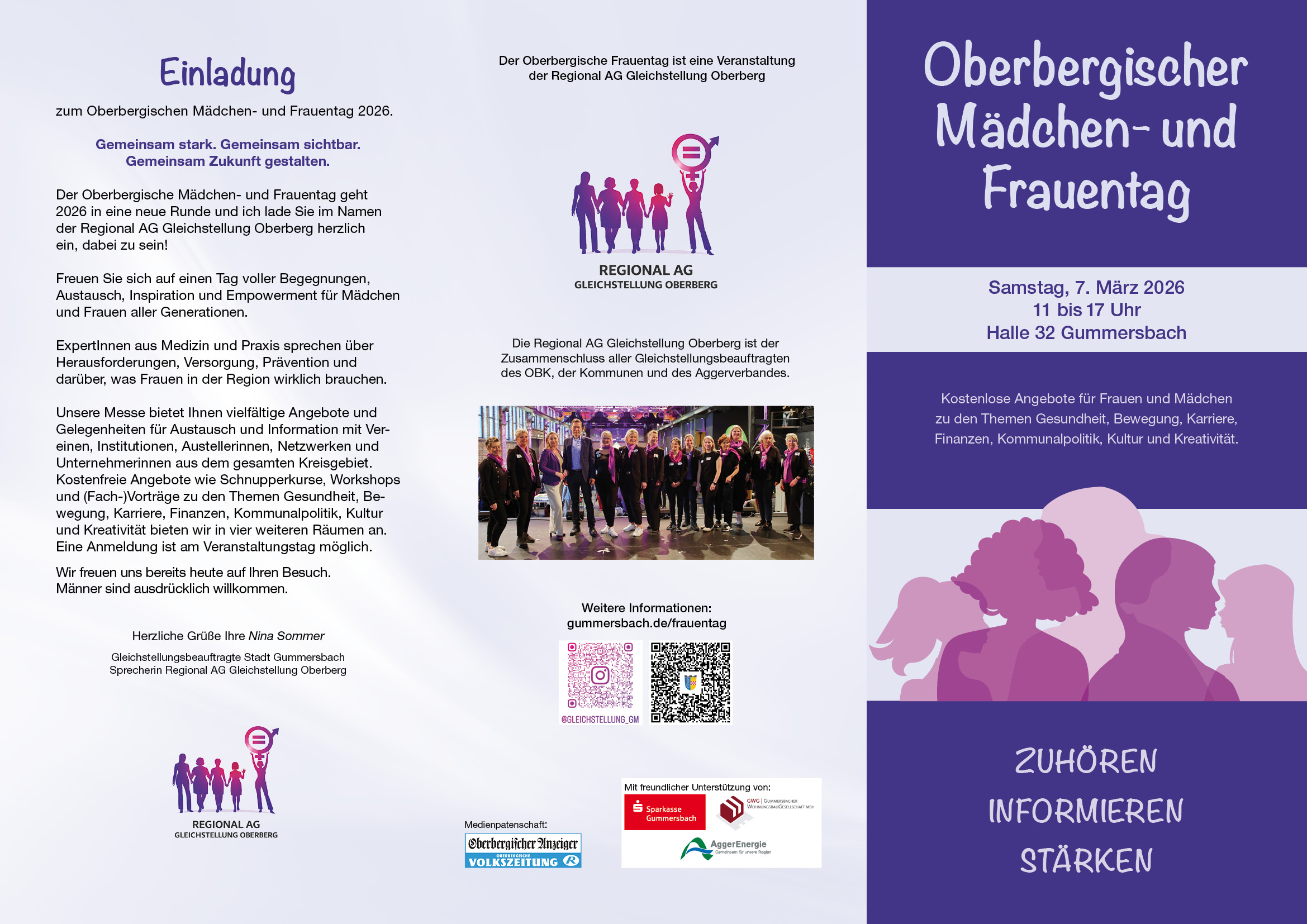 Am Samstag, den 07.03.2026 findet der Oberbergische Mädchen- und Frauentag in der Halle 32 statt. Auch wir sind dort mit einem Stand vertreten, um uns und unsere Arbeit vorzustellen.